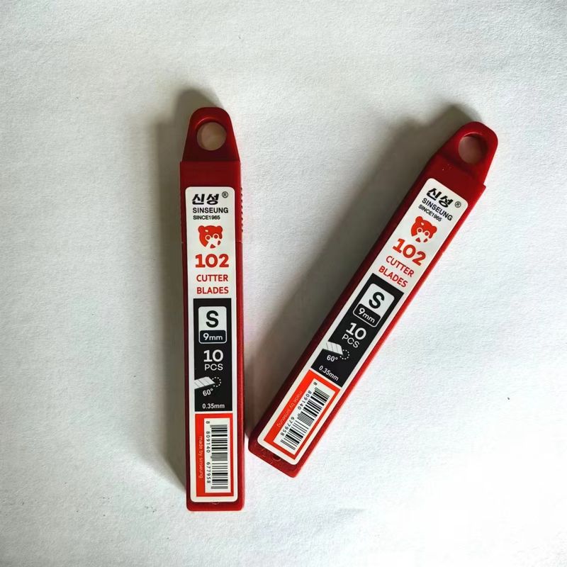 SINSEUNG S102 9mm Cutter Blades są dostępne w rurze, która zawiera 10 ostrzy do cięcia na opakowanie.W razie potrzeby dostępne są również części zamienne.Funkcja odciągającego się ostrza zwiększa wygodę produktu, umożliwiając korzystanie z świeżego i ostrego ostrza w razie potrzeby.